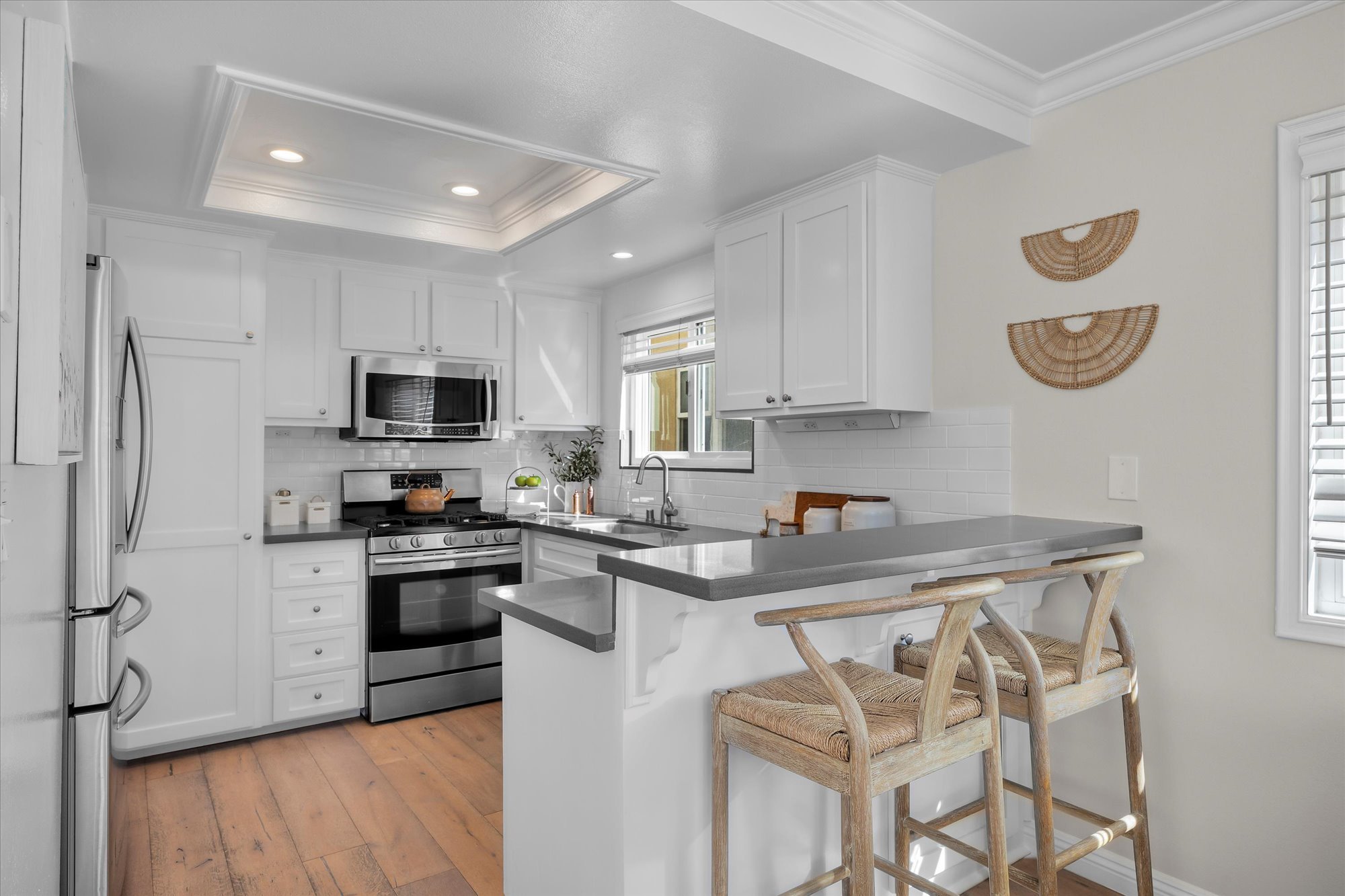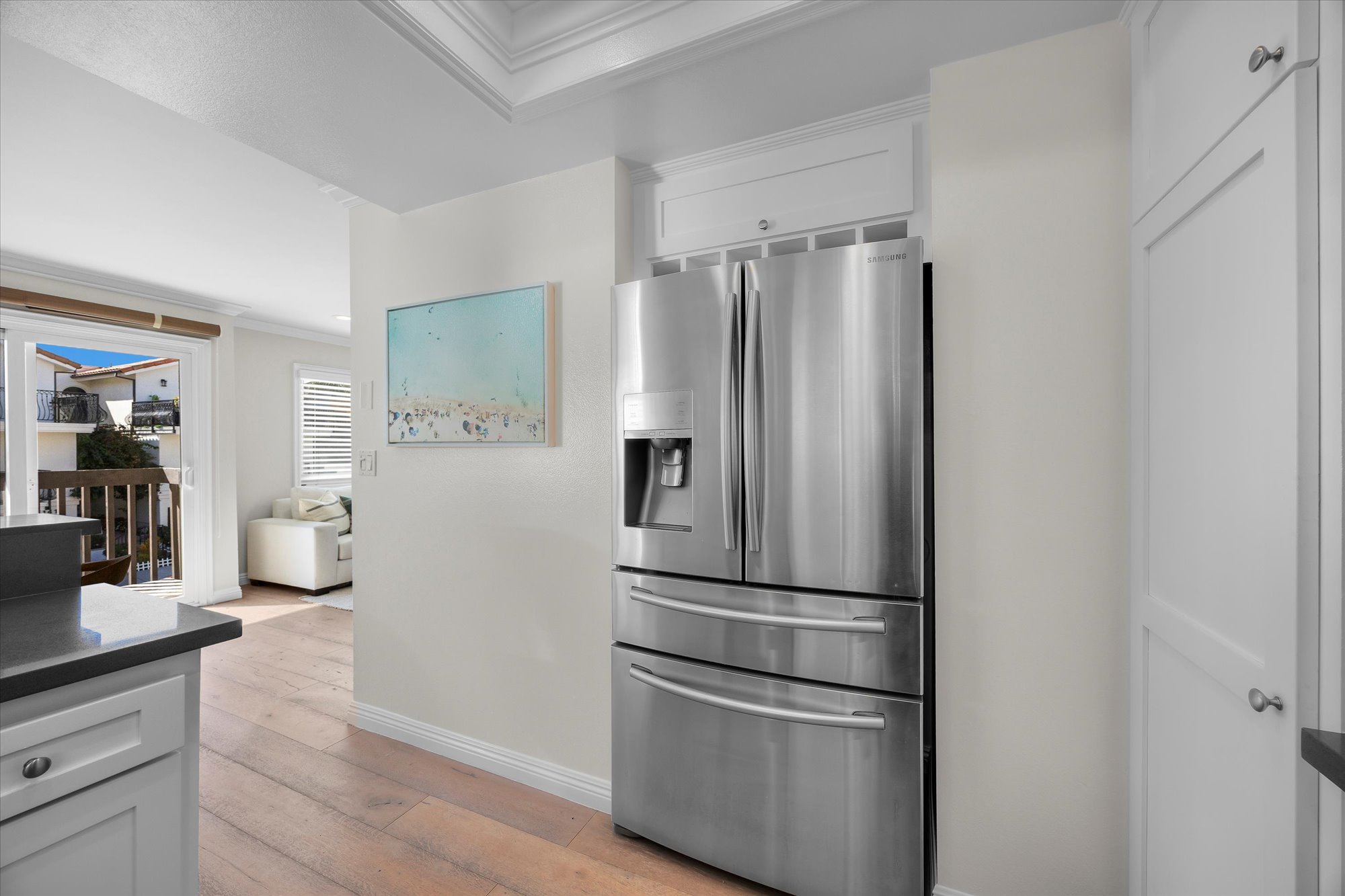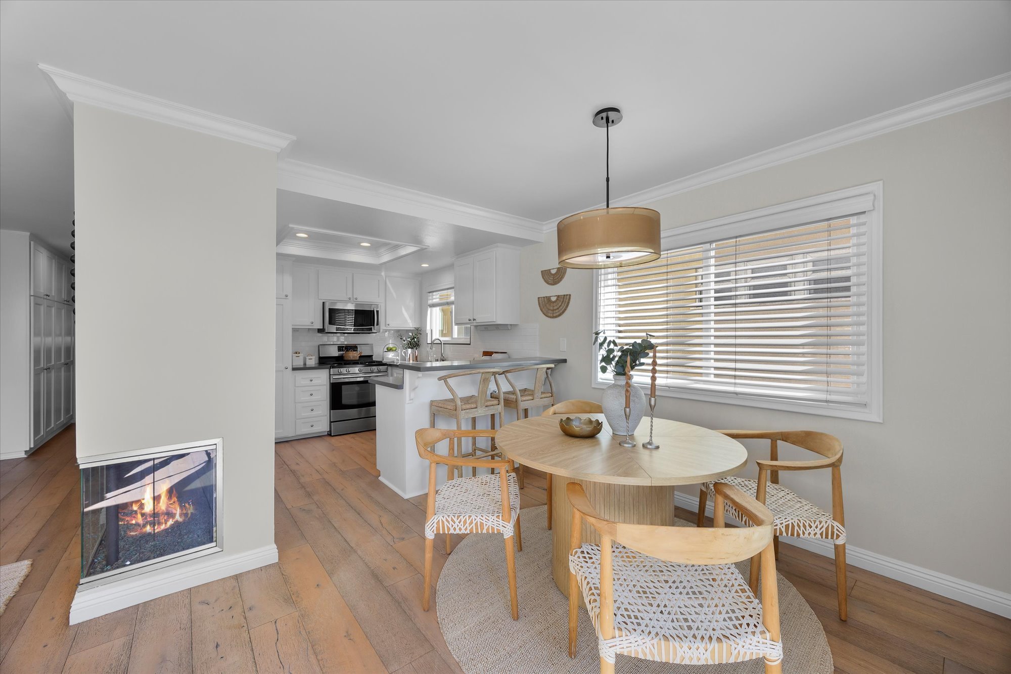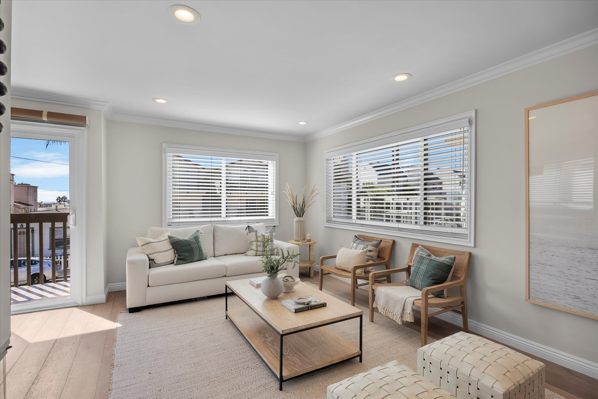 Experience the ultimate beachside lifestyle in this beautifully updated Hermosa Beach condo. Featuring two bedrooms, two bathrooms, and 953 square feet of living space, this front-facing unit captures the essence of coastal living with its private balcony and ocean views. Just one block from the sand and Hermosa Beach Pier, this home places you steps from the city’s vibrant dining, shopping, and nightlife. Inside, the freshly painted interior is filled with natural light and designed with both style and livability in mind. Ocean views can be enjoyed from the kitchen, dining, and living areas, where sliding glass doors open to the balcony, welcoming refreshing coastal breezes. A cozy gas fireplace adds warmth and character, while the kitchen is fully equipped with stainless steel appliances, barstool seating, and a natural connection to the dining area, making it perfect for entertaining.