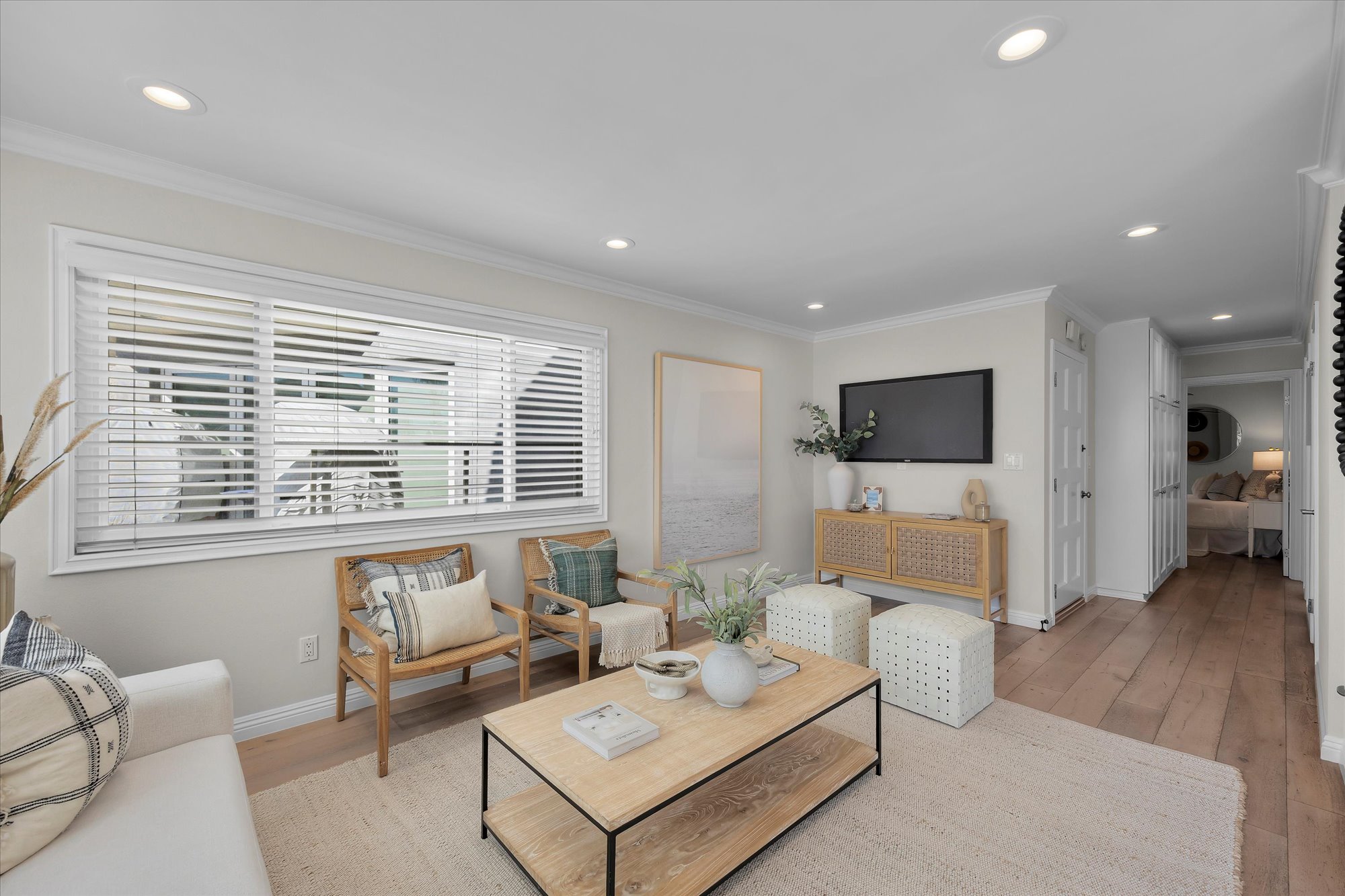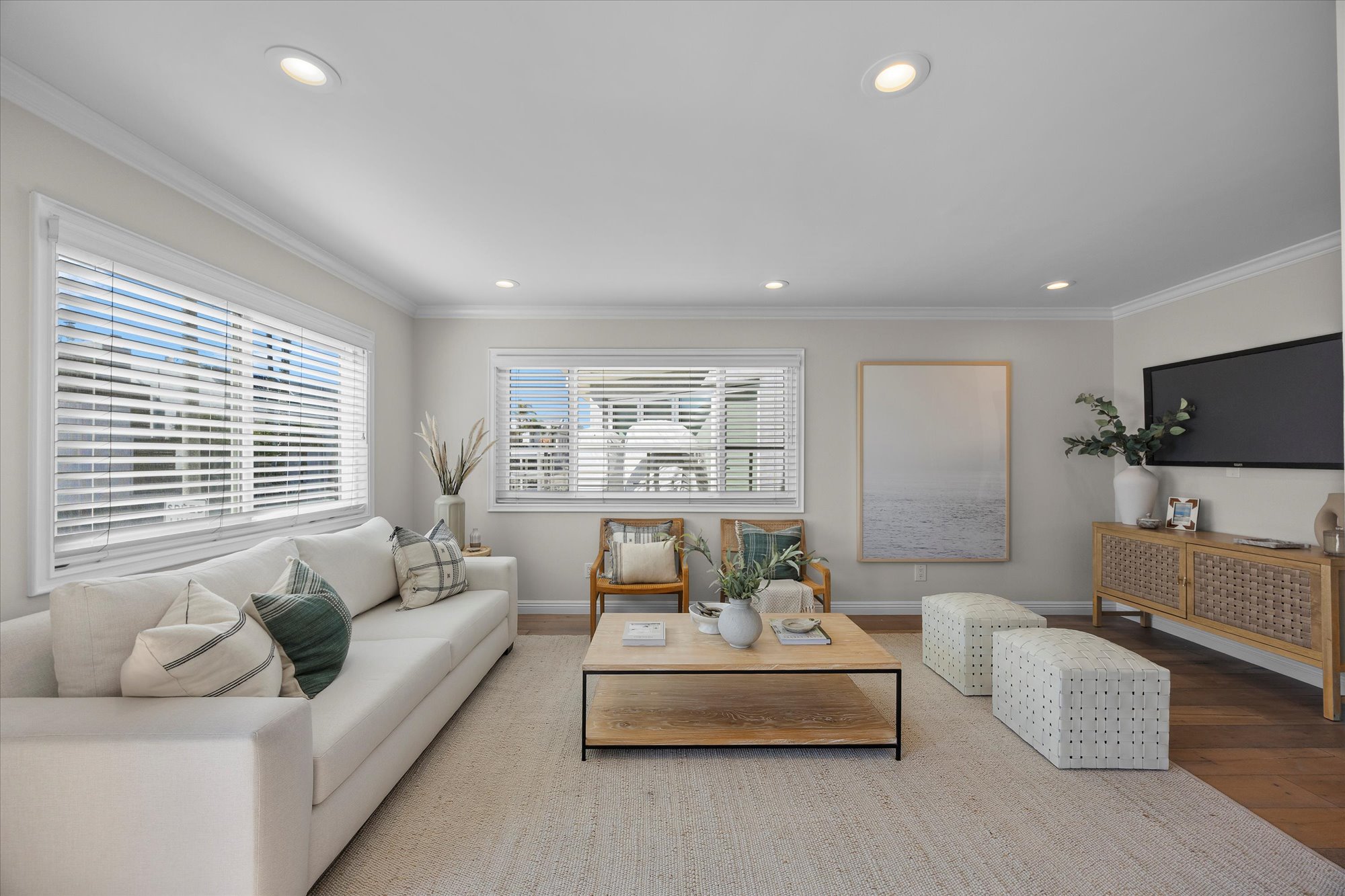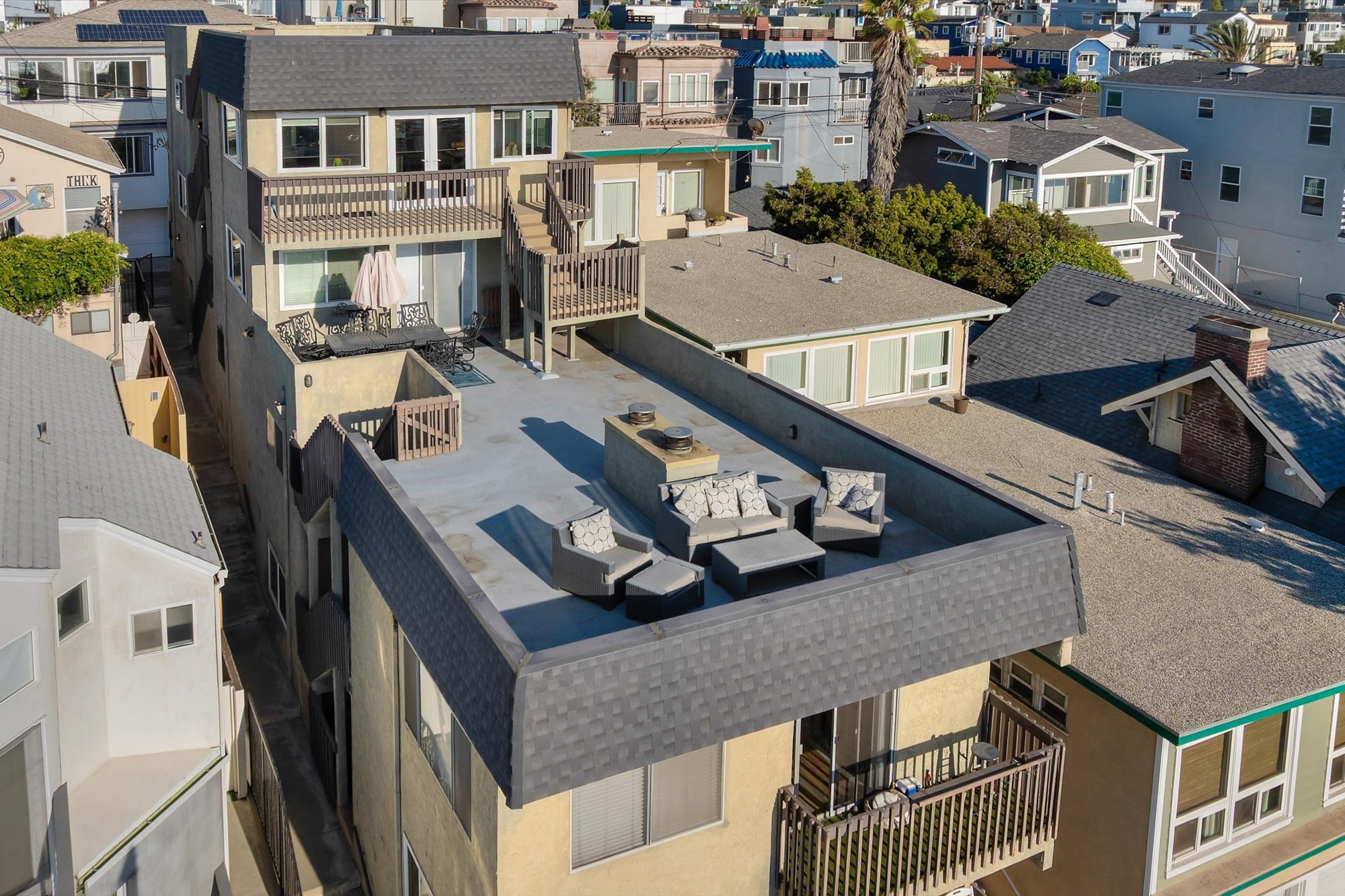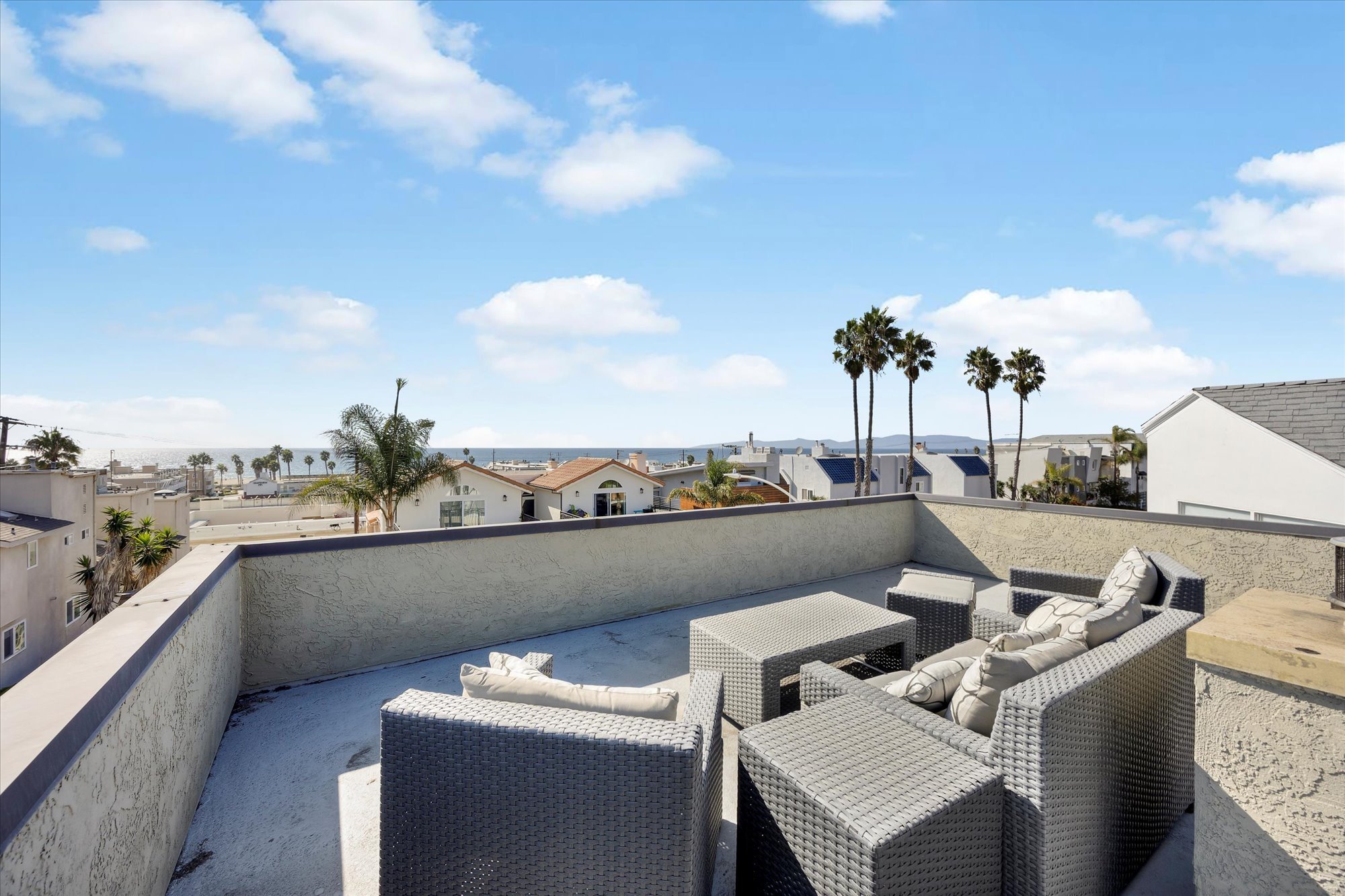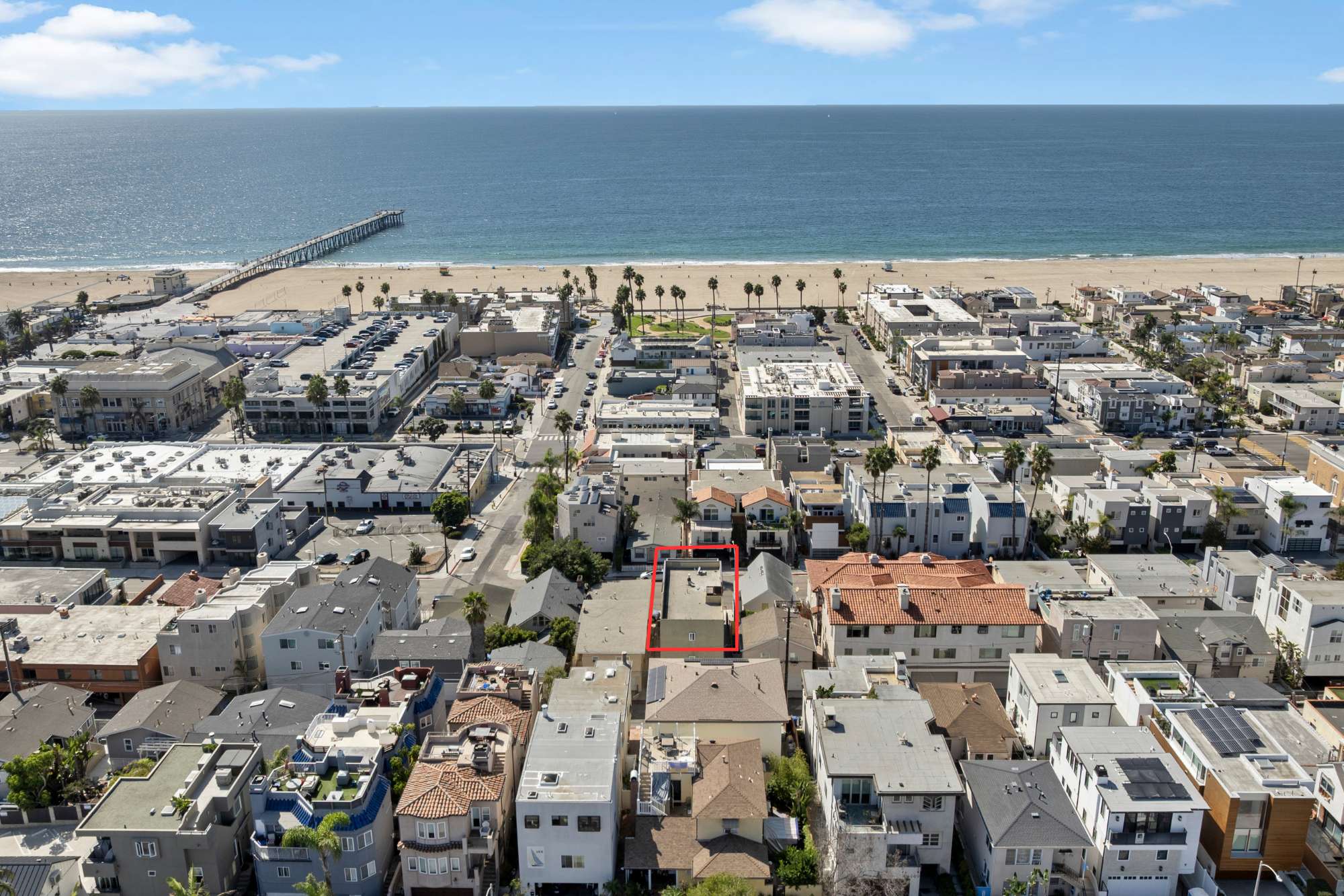 Both bedrooms are tucked privately toward the back, each offering spacious walk-in closets for exceptional storage. The primary suite features an en-suite bath enhanced by a ceiling heater for year-round comfort, while the second bedroom is served by a nearby hallway bath. Electric wall heating is provided in each bedroom, while wide plank wood flooring and recessed lighting throughout elevate the home’s modern appeal. Additional amenities include abundant hallway cabinet storage space, a shared rooftop deck with sweeping ocean views, and a convenient laundry room shared with just one other unit. The private one-car garage provides room for your vehicle along with space for surfboards, bikes, and beach gear, while permitted driveway parking adds a second dedicated spot. The city also allows you to apply for permits to park up to five cars, providing exceptional flexibility for residents and guests. Balancing location, style, and convenience, this Hermosa Beach condo is ideal as a primary residence, vacation retreat, or investment. With ocean views, abundant natural light, and a premier location steps from the pier and the beach, it embodies the best of coastal California living.