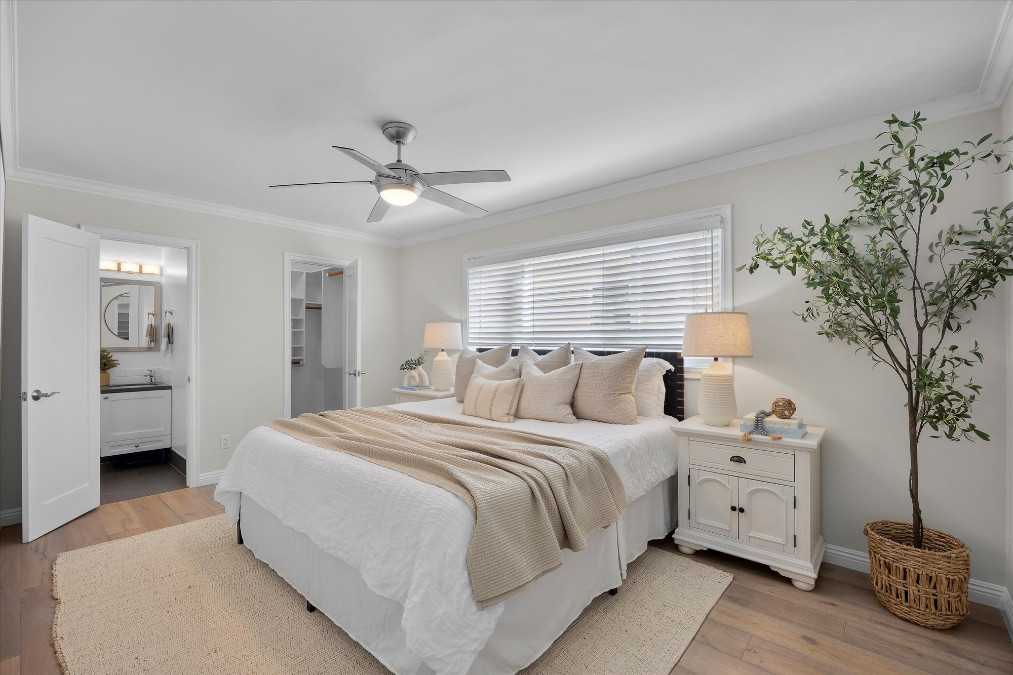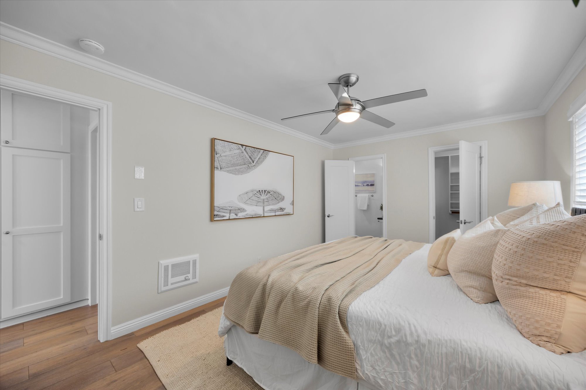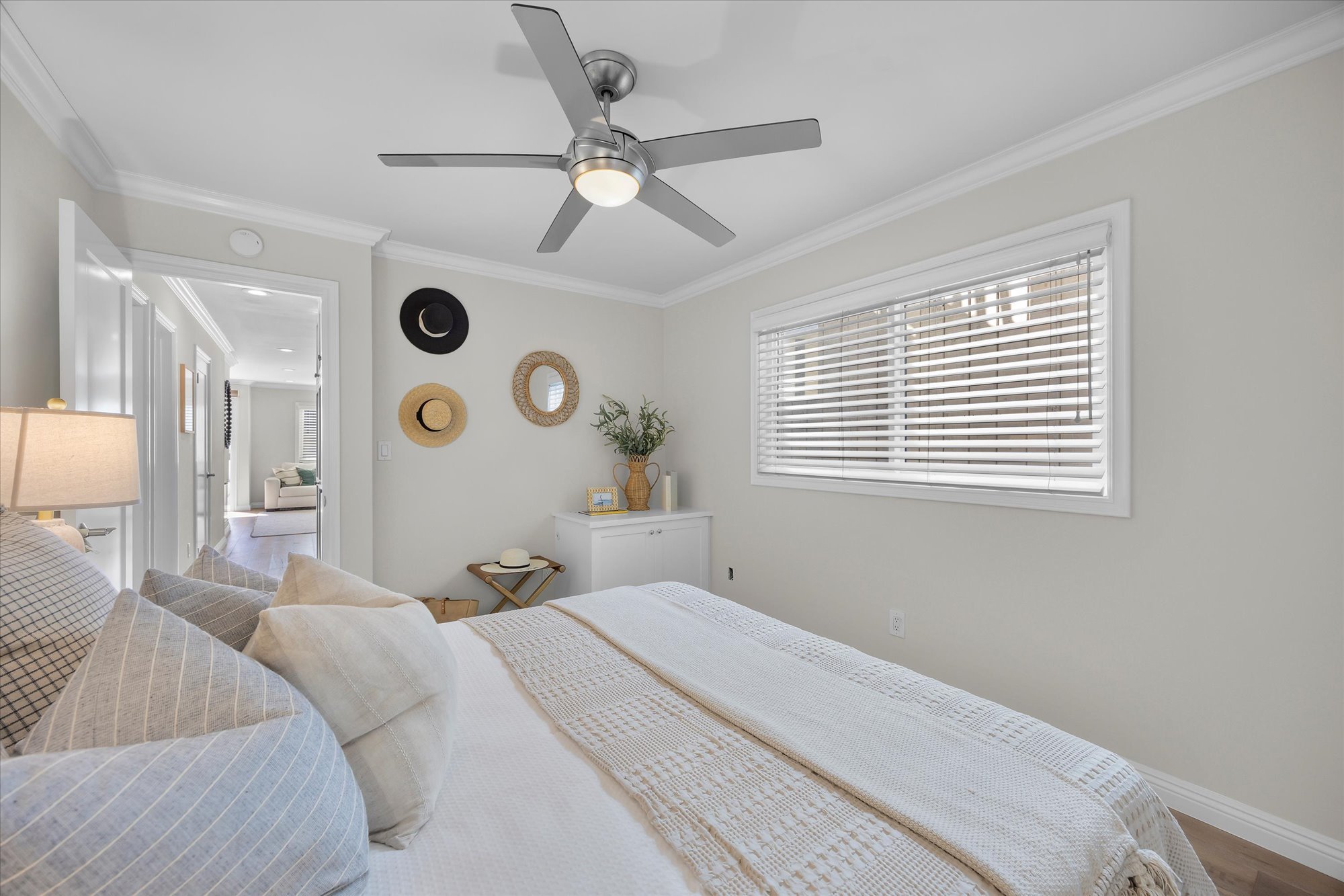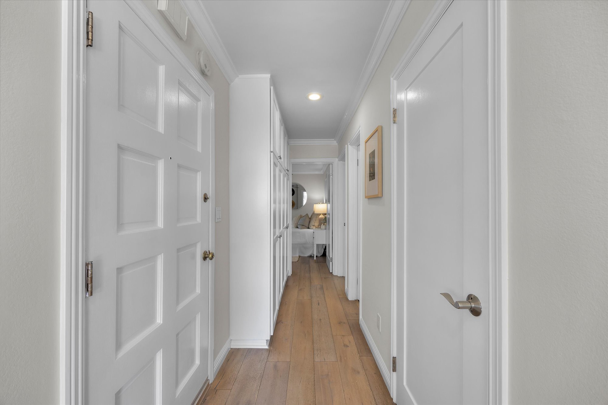 Both bedrooms are tucked privately toward the back, each offering spacious walk-in closets for exceptional storage. The primary suite features an en-suite bath enhanced by a ceiling heater for year-round comfort, while the second bedroom is served by a nearby hallway bath. Electric wall heating is provided in each bedroom, while wide plank wood flooring and recessed lighting throughout elevate the home’s modern appeal. Additional amenities include abundant hallway cabinet storage space, a shared rooftop deck with sweeping ocean views, and a convenient laundry room shared with just one other unit. The private one-car garage provides room for your vehicle along with space for surfboards, bikes, and beach gear, while permitted driveway parking adds a second dedicated spot. The city also allows you to apply for permits to park up to five cars, providing exceptional flexibility for residents and guests. Balancing location, style, and convenience, this Hermosa Beach condo is ideal as a primary residence, vacation retreat, or investment. With ocean views, abundant natural light, and a premier location steps from the pier and the beach, it embodies the best of coastal California living.