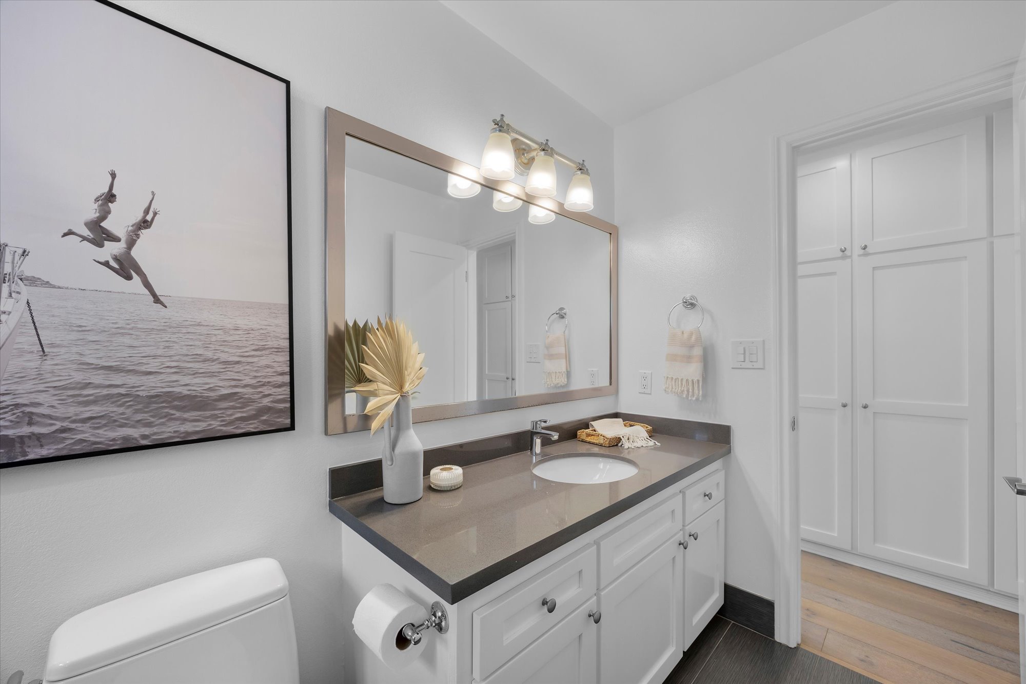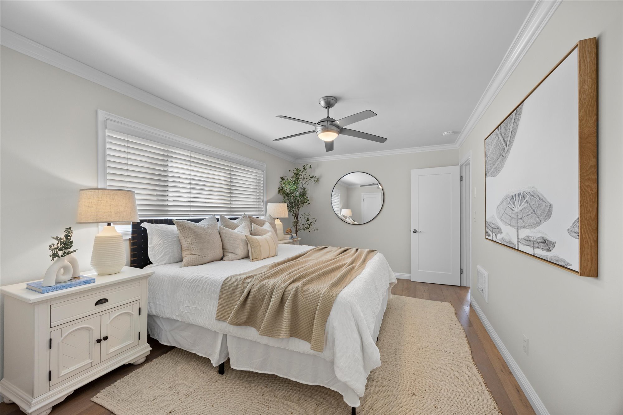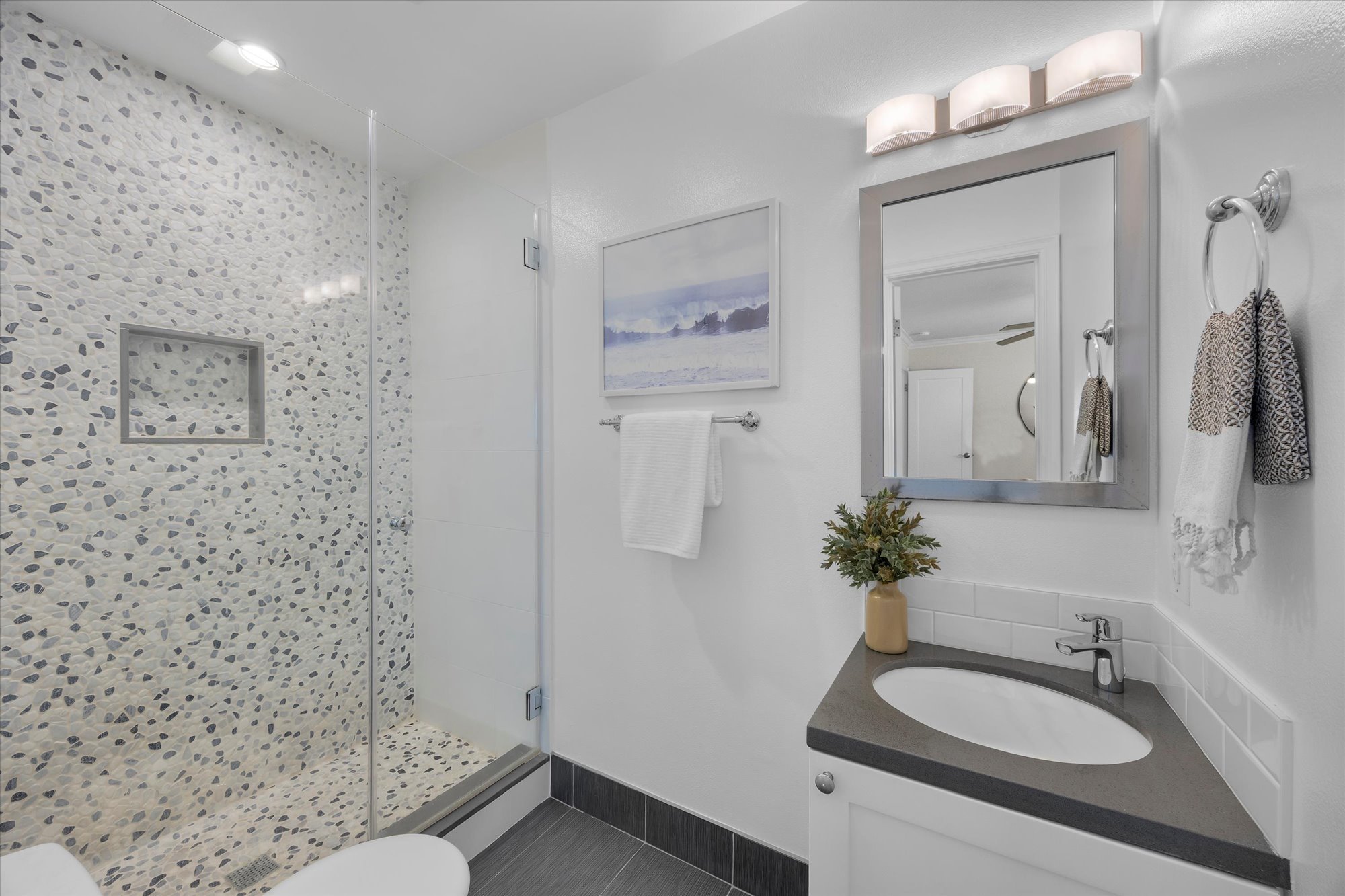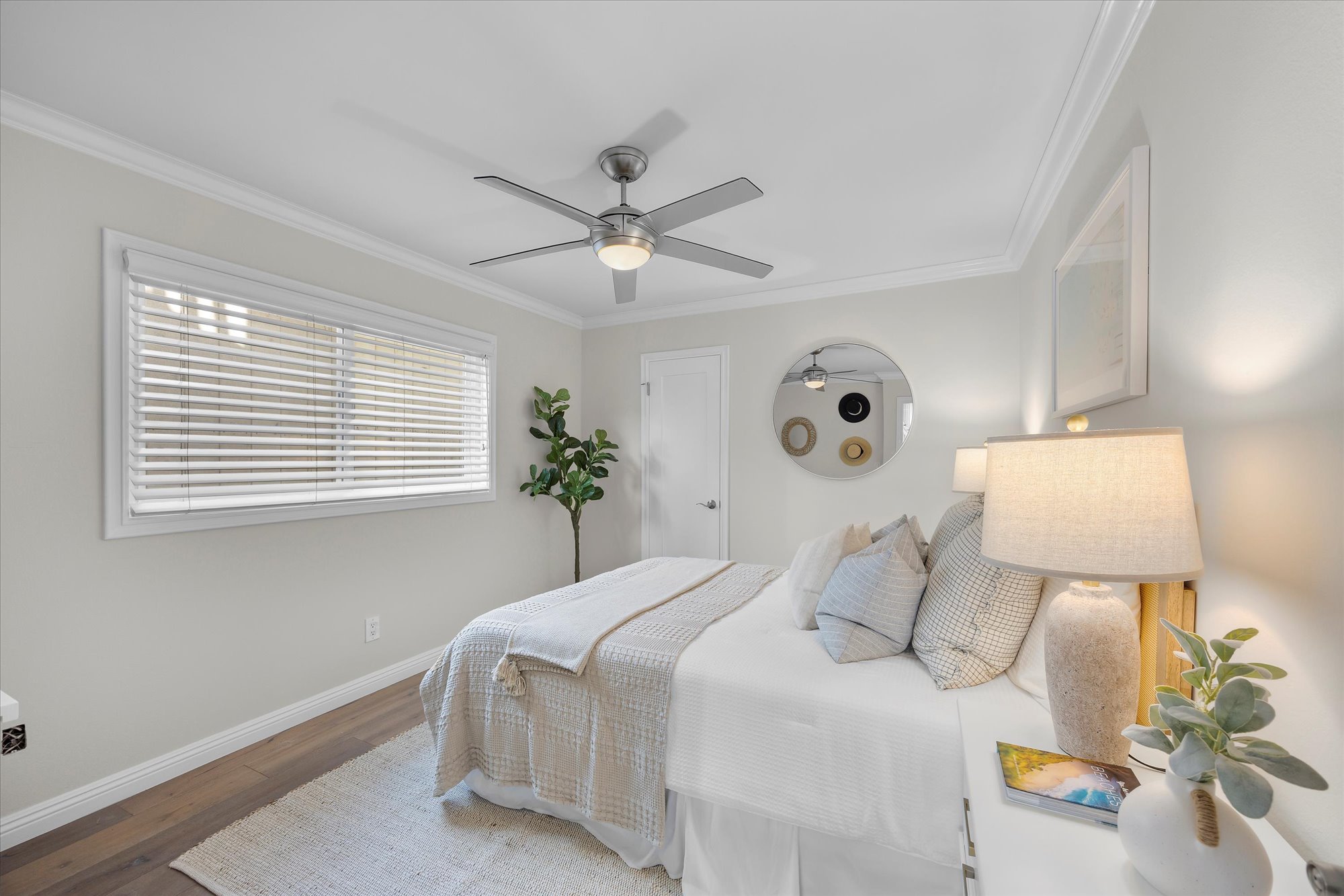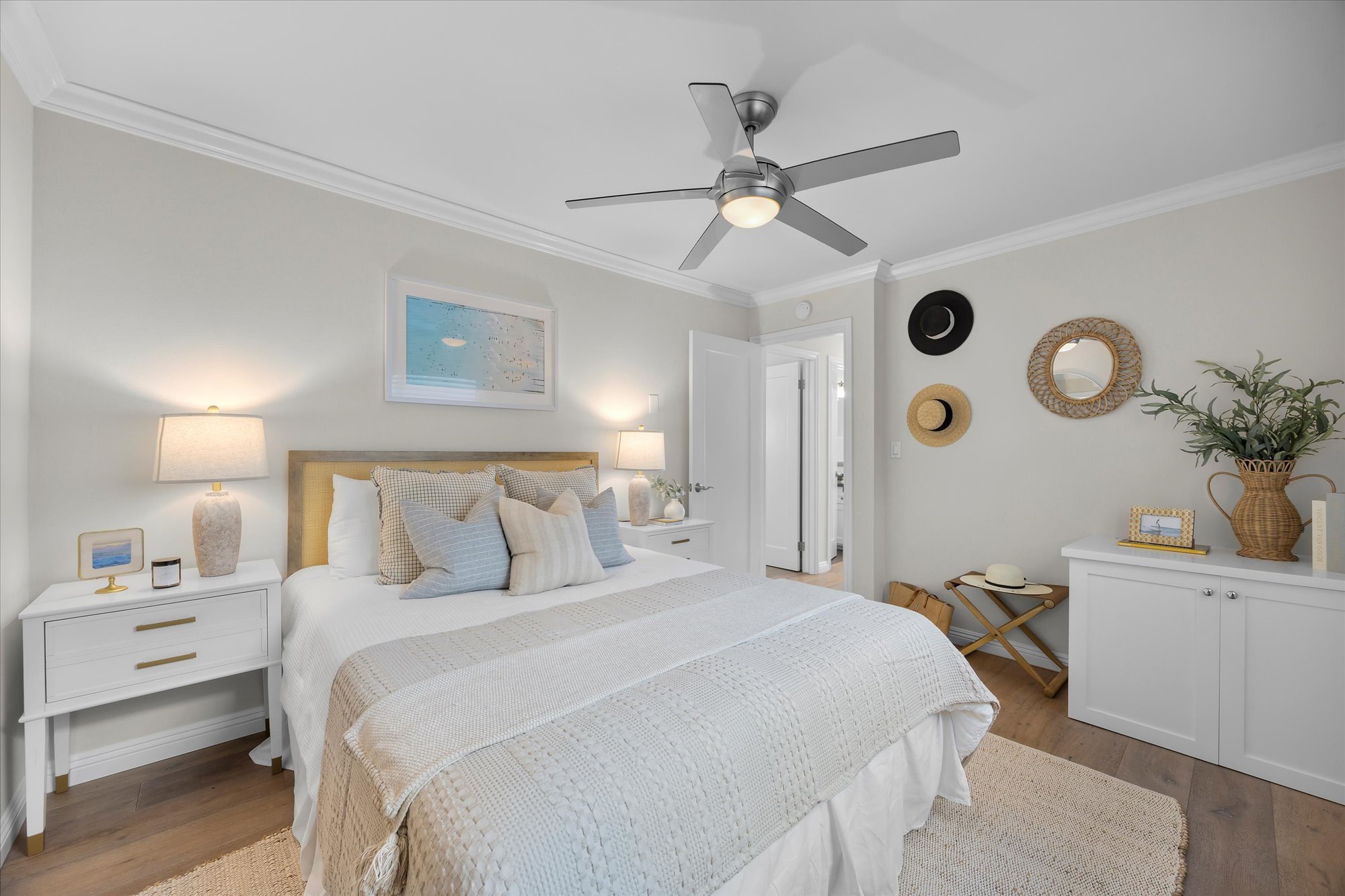 Both bedrooms are tucked privately toward the back, each offering spacious walk-in closets for exceptional storage. The primary suite features an en-suite bath enhanced by a ceiling heater for year-round comfort, while the second bedroom is served by a nearby hallway bath. Electric wall heating is provided in each bedroom, while wide plank wood flooring and recessed lighting throughout elevate the home’s modern appeal. Additional amenities include abundant hallway cabinet storage space, a shared rooftop deck with sweeping ocean views, and a convenient laundry room shared with just one other unit. The private one-car garage provides room for your vehicle along with space for surfboards, bikes, and beach gear, while permitted driveway parking adds a second dedicated spot. The city also allows you to apply for permits to park up to five cars, providing exceptional flexibility for residents and guests. Balancing location, style, and convenience, this Hermosa Beach condo is ideal as a primary residence, vacation retreat, or investment. With ocean views, abundant natural light, and a premier location steps from the pier and the beach, it embodies the best of coastal California living.