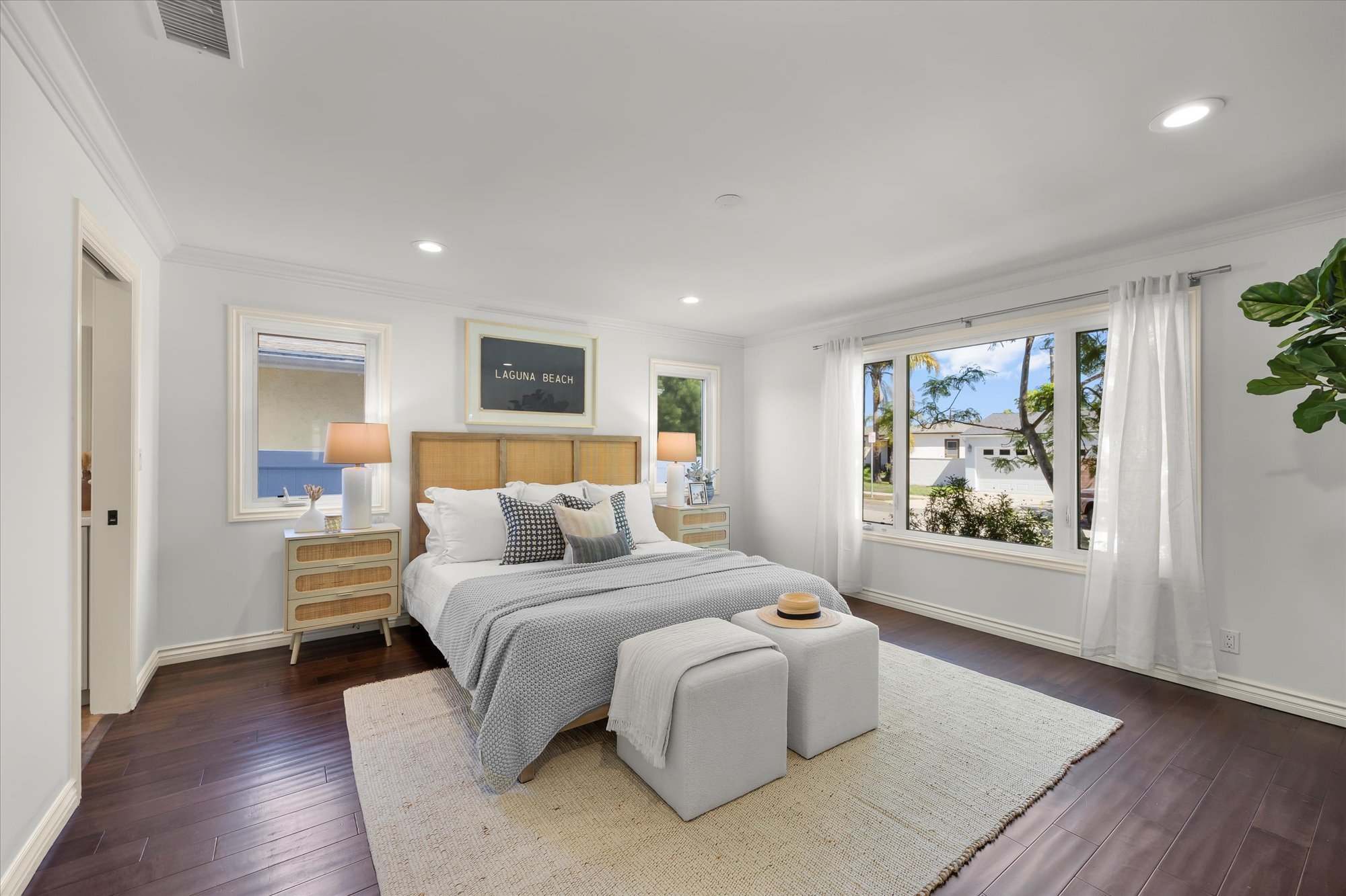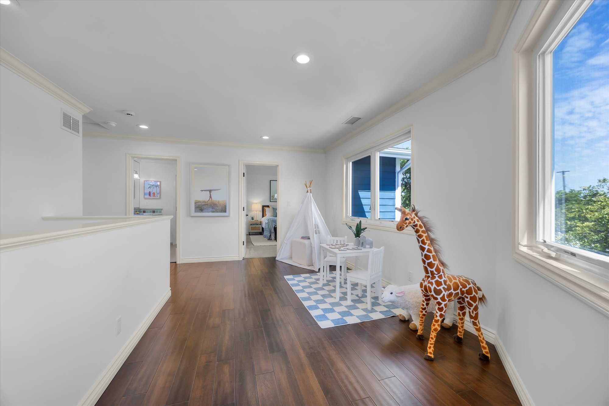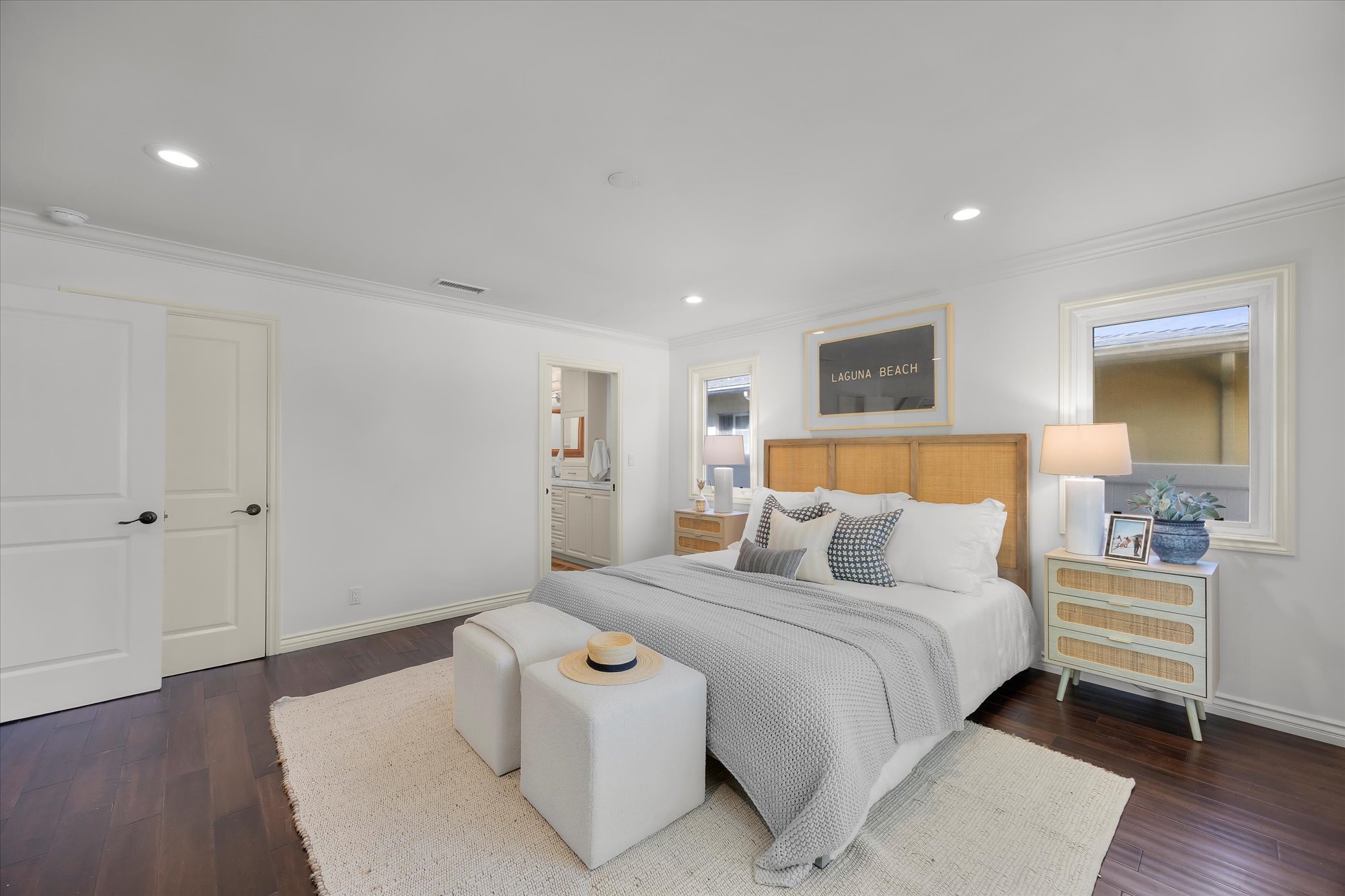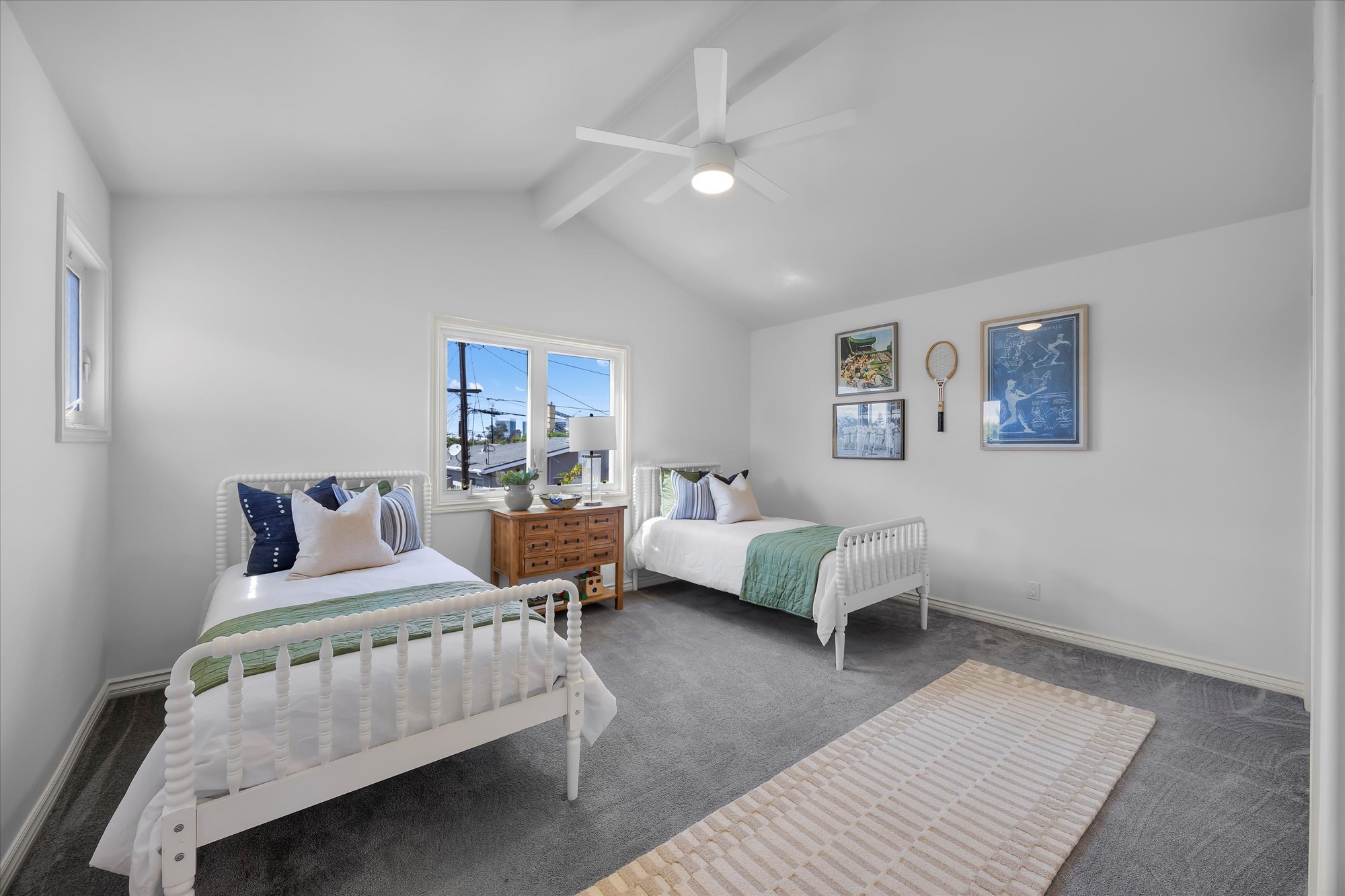 The first floor further includes a versatile laundry room that can double as a creative or flex space, with its own French doors opening to the yard, along with a convenient half bath for guests.